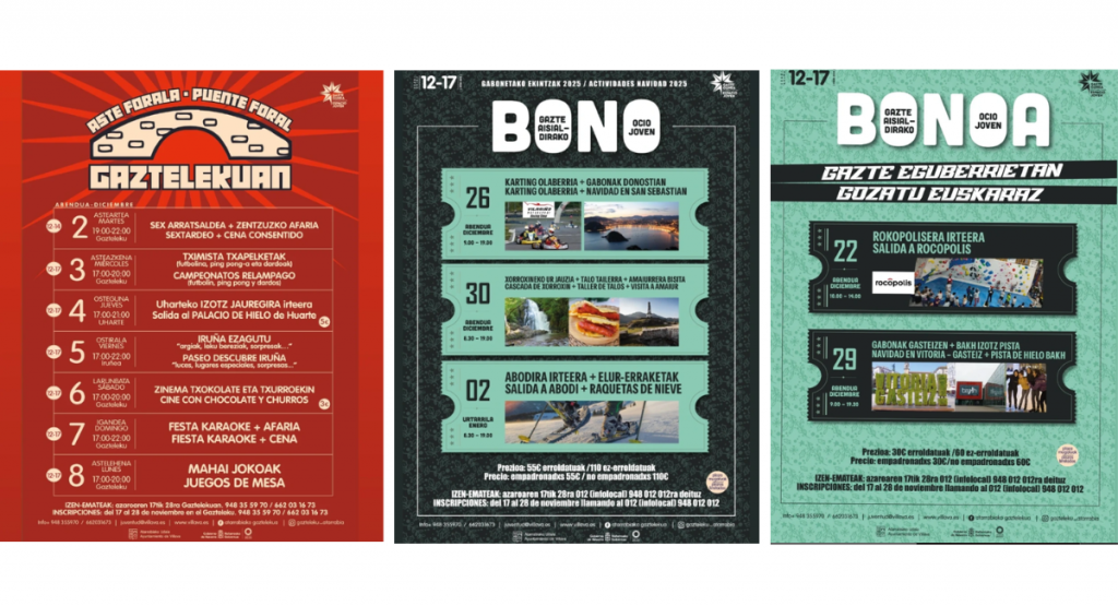Abenduan, 12 eta 17 urte bitarteko gazteek aukera izango dute zubiko eta Gabonetako egunetan jarduera bereziak, irteerak eta abenturaz betetako egunak bizitzeko. Proposamen anitz, negua modu dibertigarrian gozatzeko.